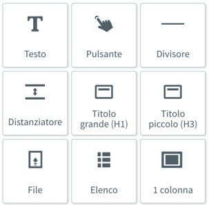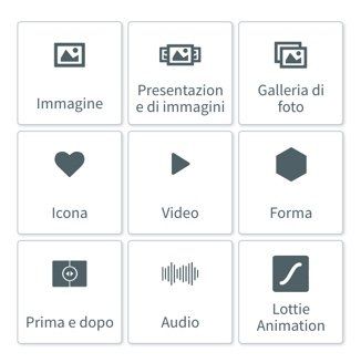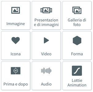 - Aggiungi testi, icone, immagini video, audio e bottoni